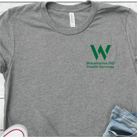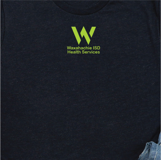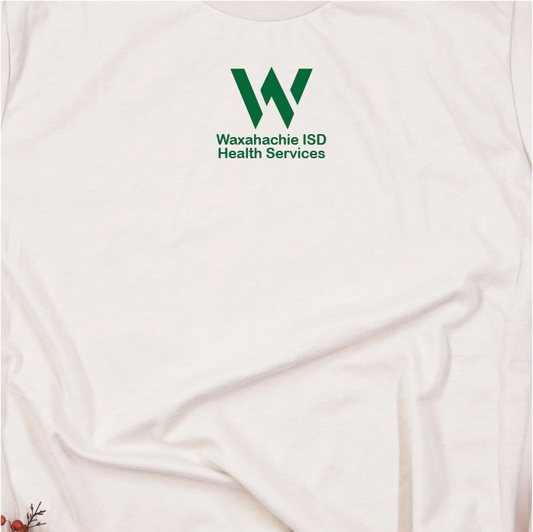 Configuration: With the design on the BACK, the Waxahachie ISD Health Science mark will be on the front left chest area. With the design on the FRONT, the W will be on the back tag area (1" below the back collar). #classylook