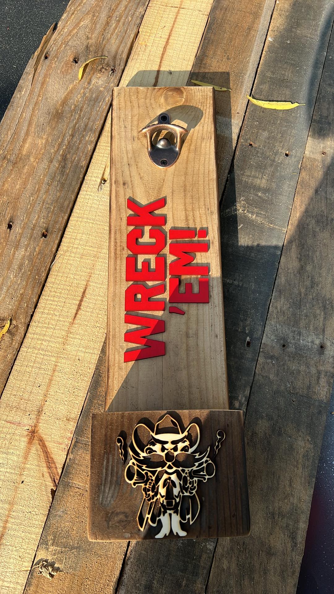 "Wreck Em" Texas Tech Wall Mounted Bottle Opener